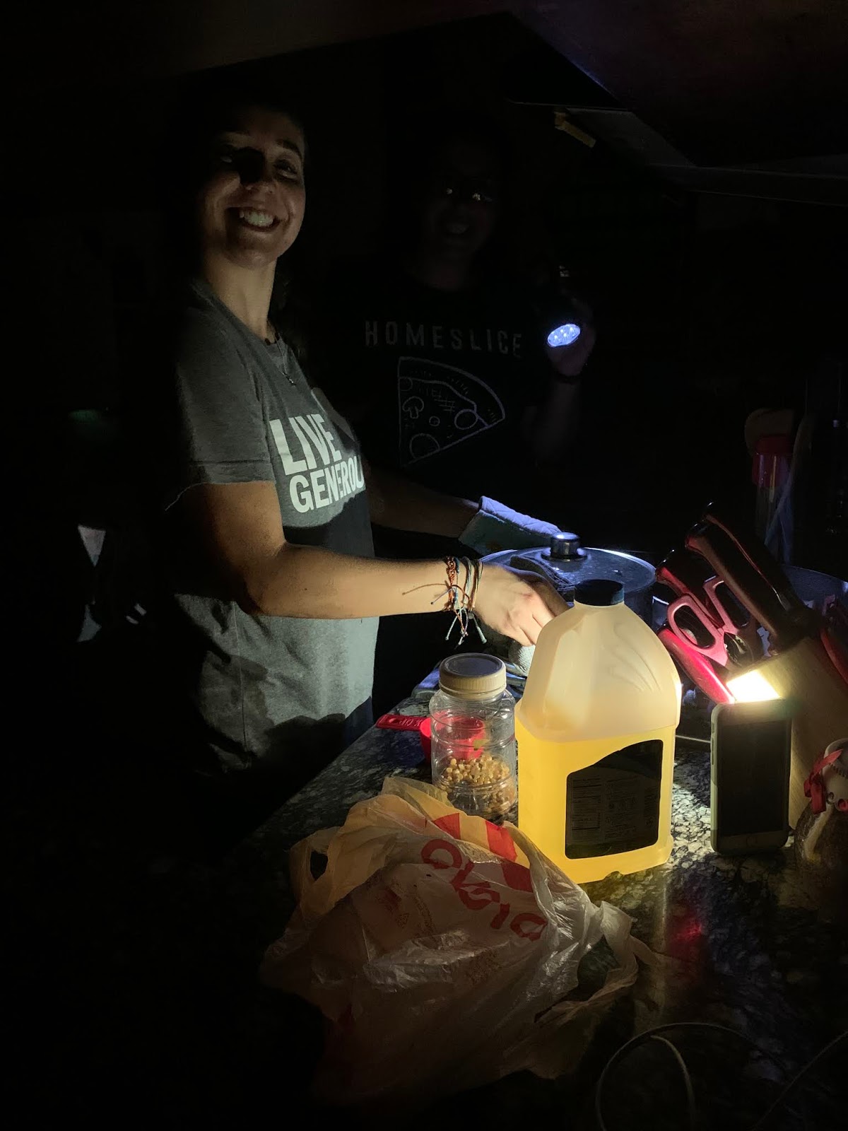 In many respects, life has returned to normalcy. Last night, I had friends over for a movie night. Once the power came back on (like I said, normalcy), we watched La La Land. In the meantime, Courtney and Tirzah (to Courtney’s left, holding the flashlight) made popcorn and we started a game of candlelit Phase 10 that I’d be OK with never finishing.